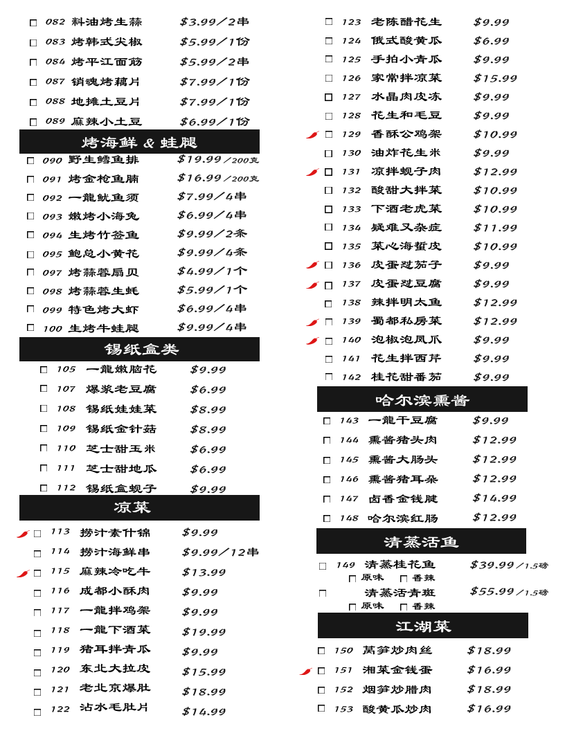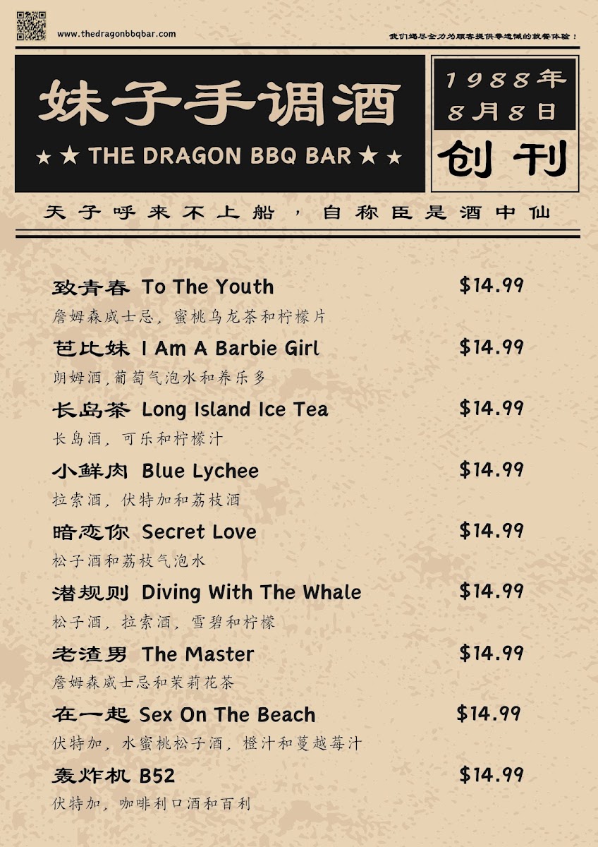 At The Dragon BBQ Bar, the menu is a celebration of Chinese cuisine, with a wide range of mouth-watering options that will tantalize your taste buds. From their exquisite Foil Box series, try the Juicy Tofu (CA$7.99) bursting with flavor, or dive into the rich, savory Garlic Clams (CA$10.99). For a truly unique experience, don't miss the opportunity to sample the Pork Brain (CA$8.99) — a delicacy that promises to delight those seeking an adventurous palate.
